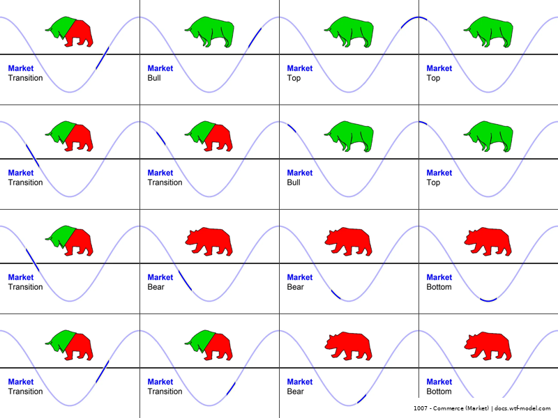 A bull market is when the economy is doing well and stocks are rising, while the bear market is when the economy is struggling and stocks are falling.