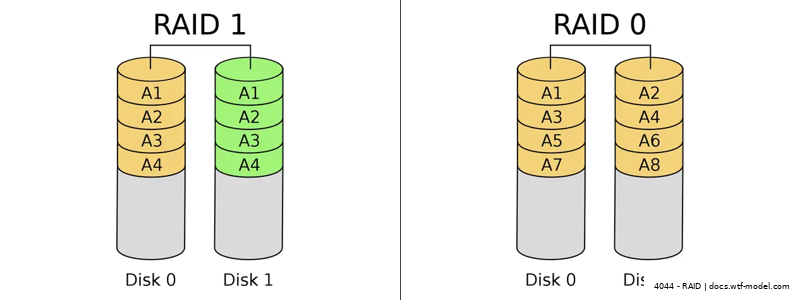 RAID 1 mirrors data for redundancy, improving fault tolerance. RAID 0 stripes data across drives, enhancing speed but no redundancy.