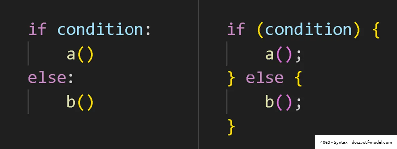 Indentation-based syntax defines structure vertically through whitespace alignment, while block-structured syntax defines it horizontally with braces marking scope.