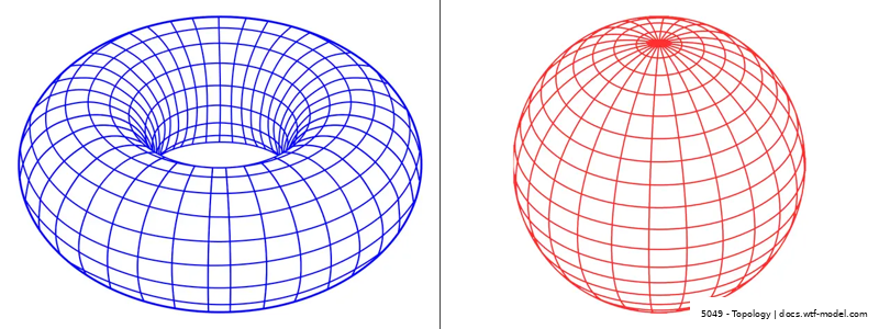 Topology is a branch of math that studies the properties of shapes and spaces. A sphere is a closed surface with no edges, while a torus is a doughnut-shaped surface with a hole in the middle. Topology explores the similarities and differences between these shapes and how they can be transformed without changing their essential properties.
