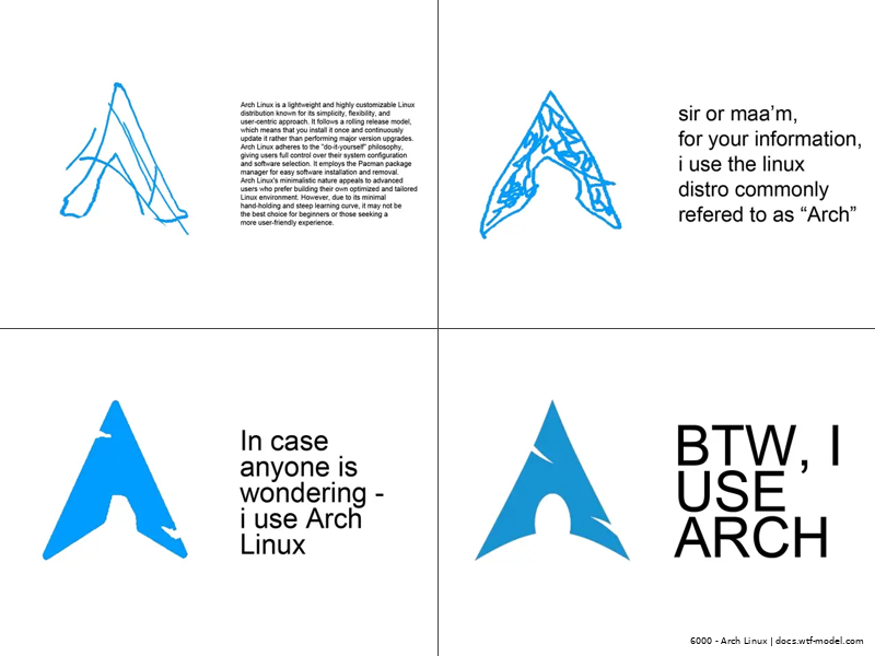 6000 - Arch LinuxLast Update: 26.06.2025ShareMaturityBasicScopeFlowCycleCenterPeripheryCC-BY-NC-ND Philipp ElhausAI GeneratedAs information increases, clarity reduces.LinksBTW I Use Arch (Know your Meme) WARNING: This entry is marked as experimental/in development.