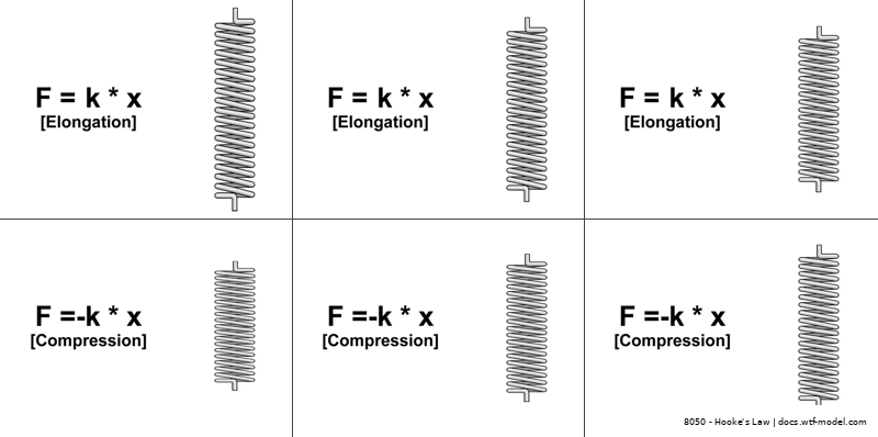 Hooke's Law states that the force F exerted by a spring is directly proportional to its elongation x from its equilibrium position.